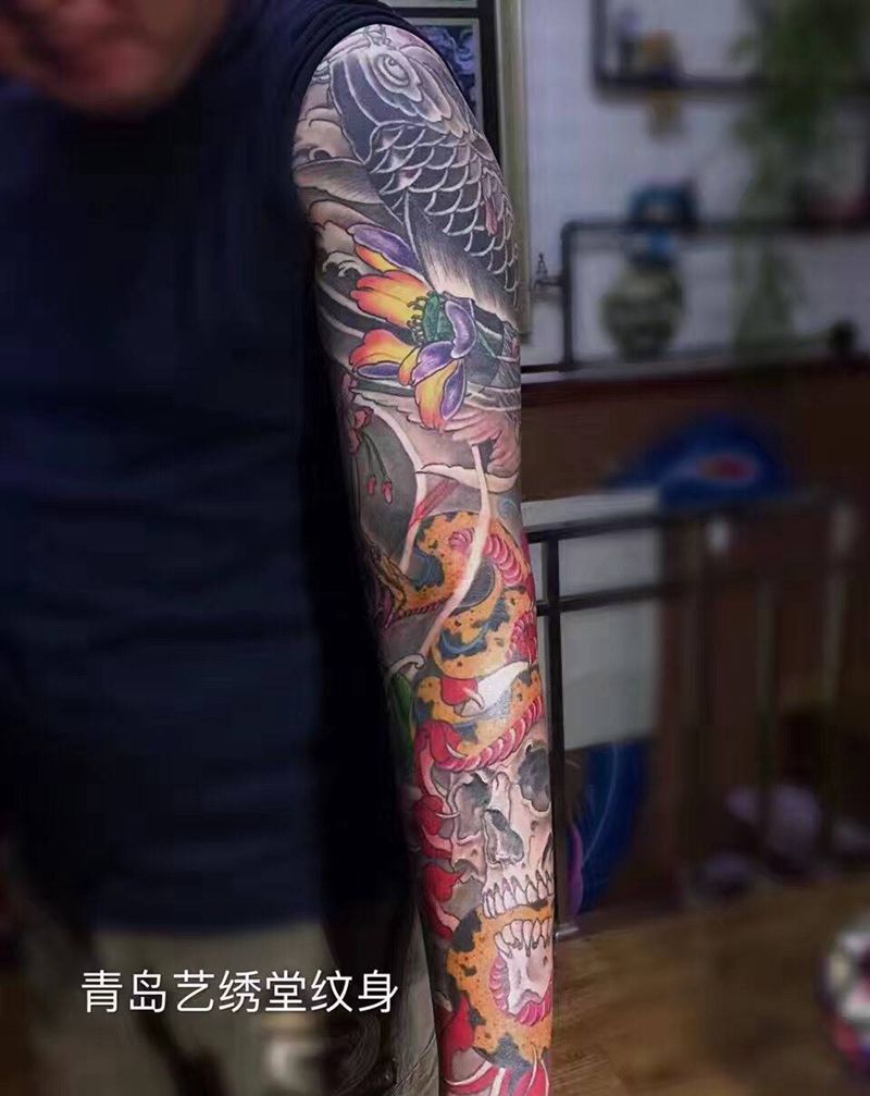 当前位置: 首页 >山东省青岛市纹身店-青岛艺绣堂纹身纹身图案>传统包臂纹身图片