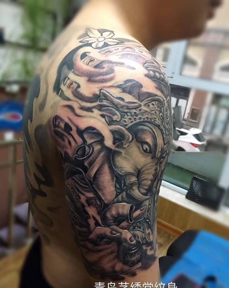 当前位置: 首页 >山东省青岛市纹身店-青岛艺绣堂纹身纹身图案>象神纹身图片