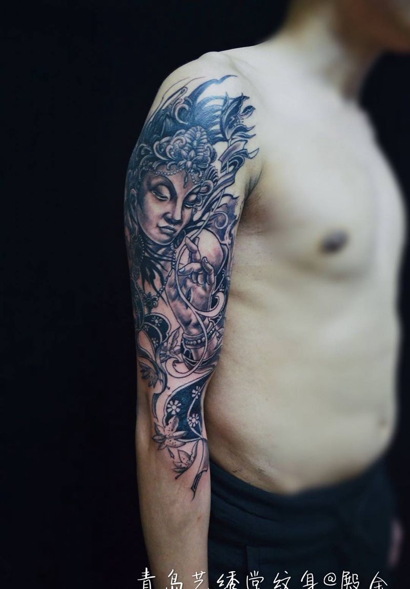 当前位置: 首页 >山东省青岛市纹身店-青岛艺绣堂纹身纹身图案>白度母纹身图片_成品手稿臀部传统人物纹身图案