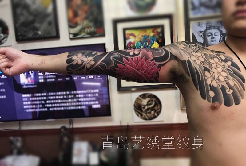 • 女性大花胸纹身_43张霸气漂亮的女性大花胸纹身图案作品