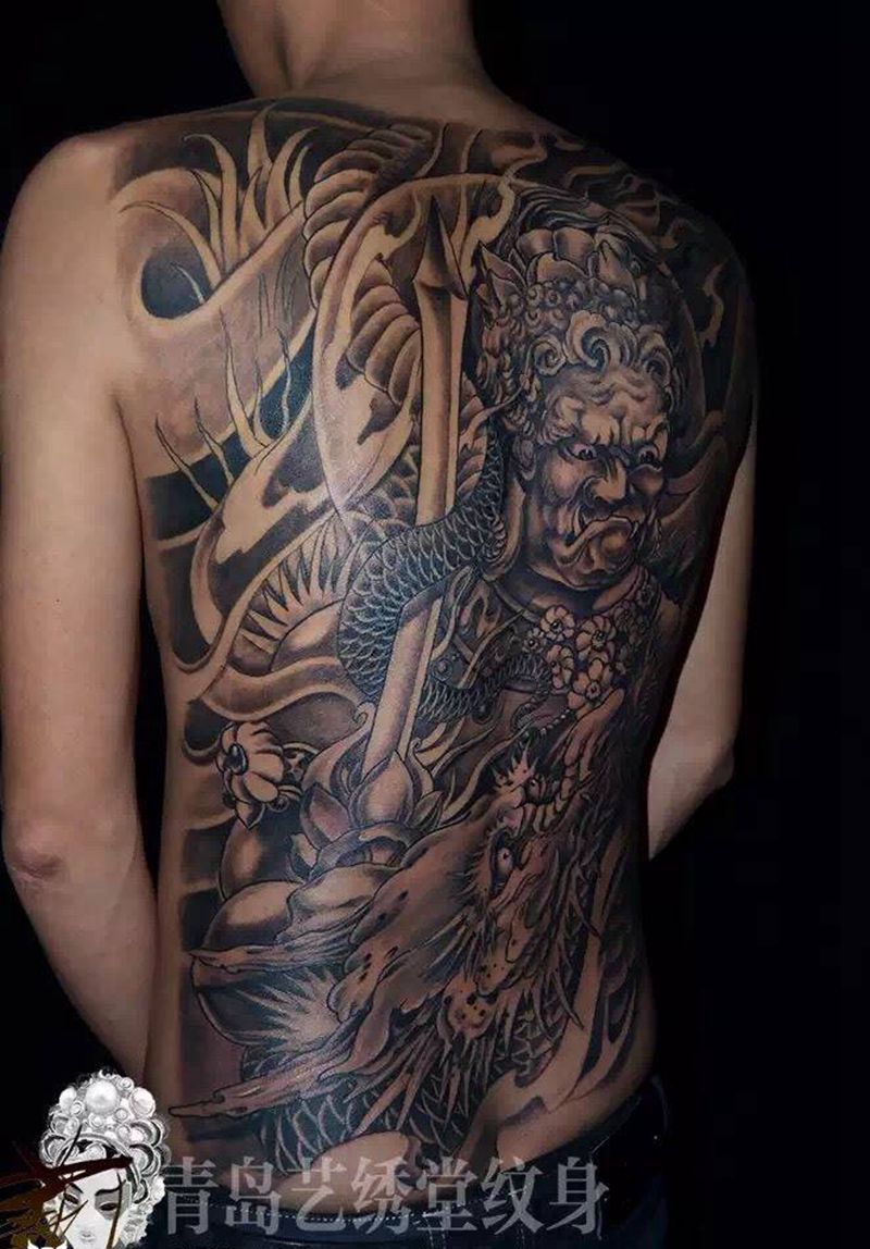 黑灰满背纹身图案
