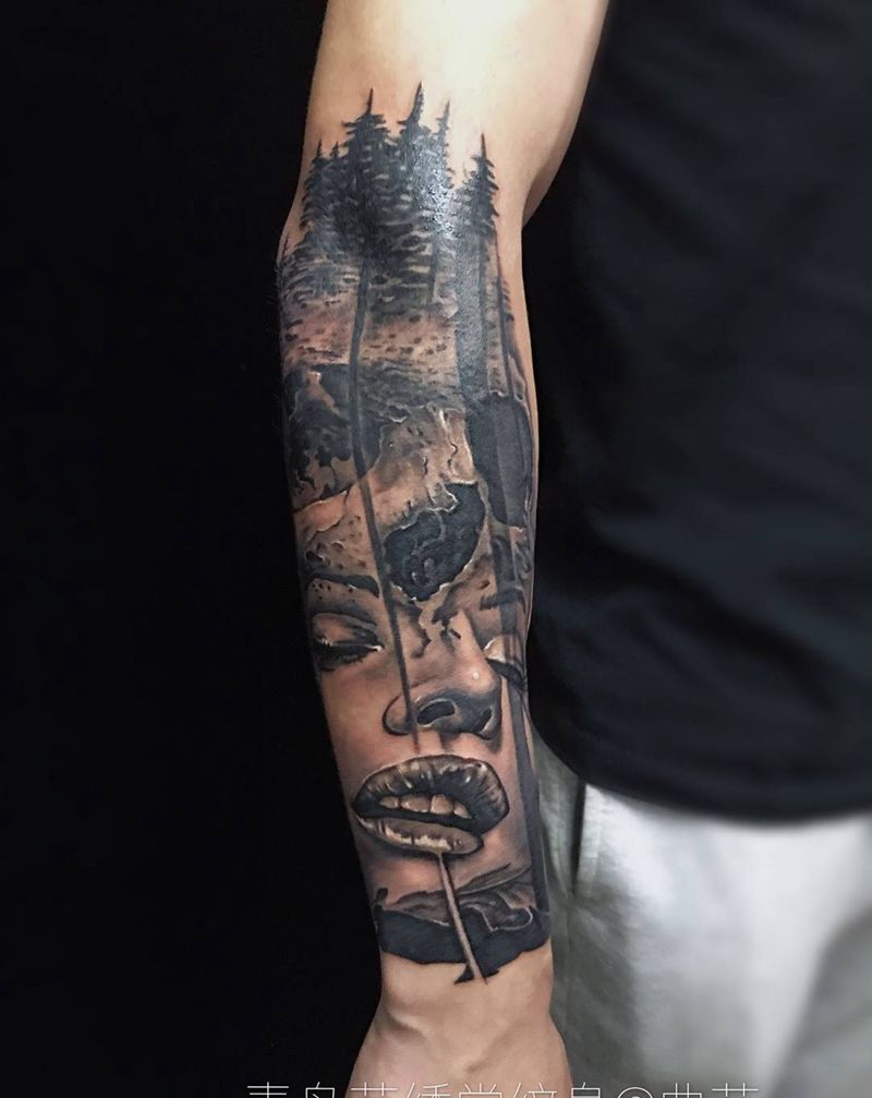花臂纹身图片_成品手稿欧美手臂原创写实颈部纹身图案