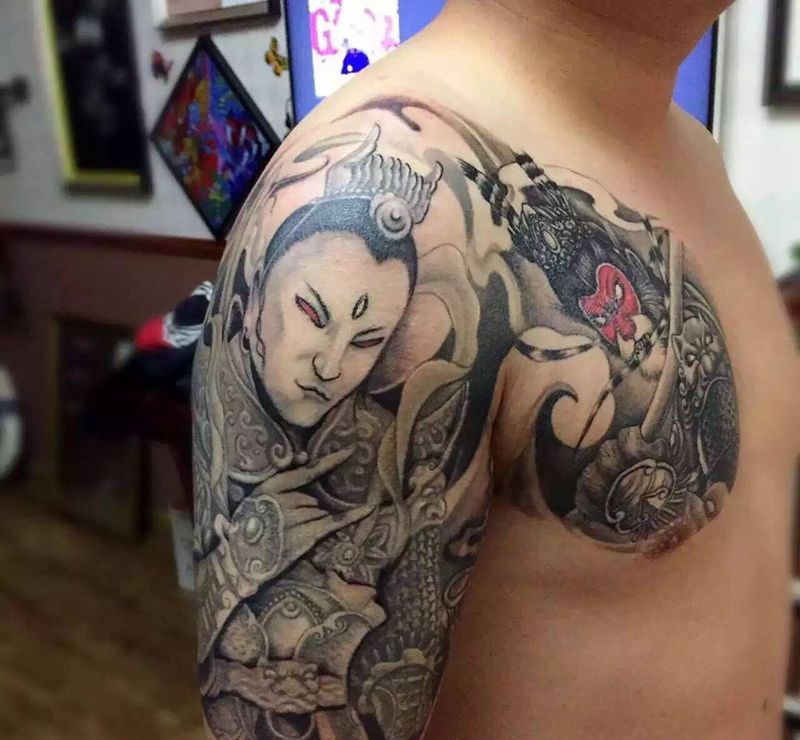 当前位置: 首页 >山东省青岛市纹身店-青岛艺绣堂纹身纹身图案>西游纹身图片_成品手稿手臂写实人物纹身图案