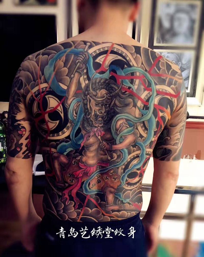 黑灰满背纹身图案