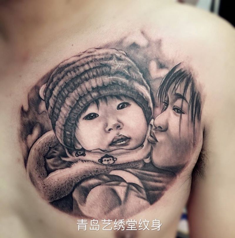 当前位置: 首页 >山东省青岛市纹身店-青岛艺绣堂纹身纹身图案>情纹身图片_成品胸部肖像原创人物纹身图案