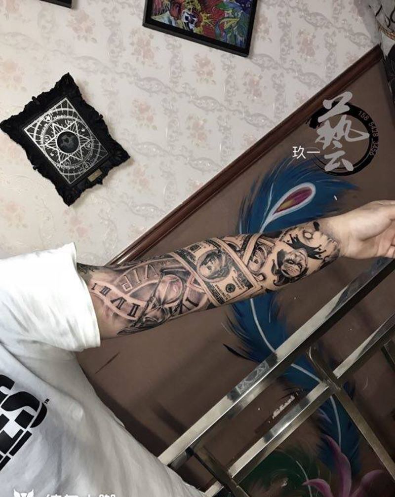 当前位置: 首页 >山东省青岛市纹身店-青岛艺绣堂纹身纹身图案>包臂欧美纹身图片_手臂欧美写实欧美肖像纹身图案