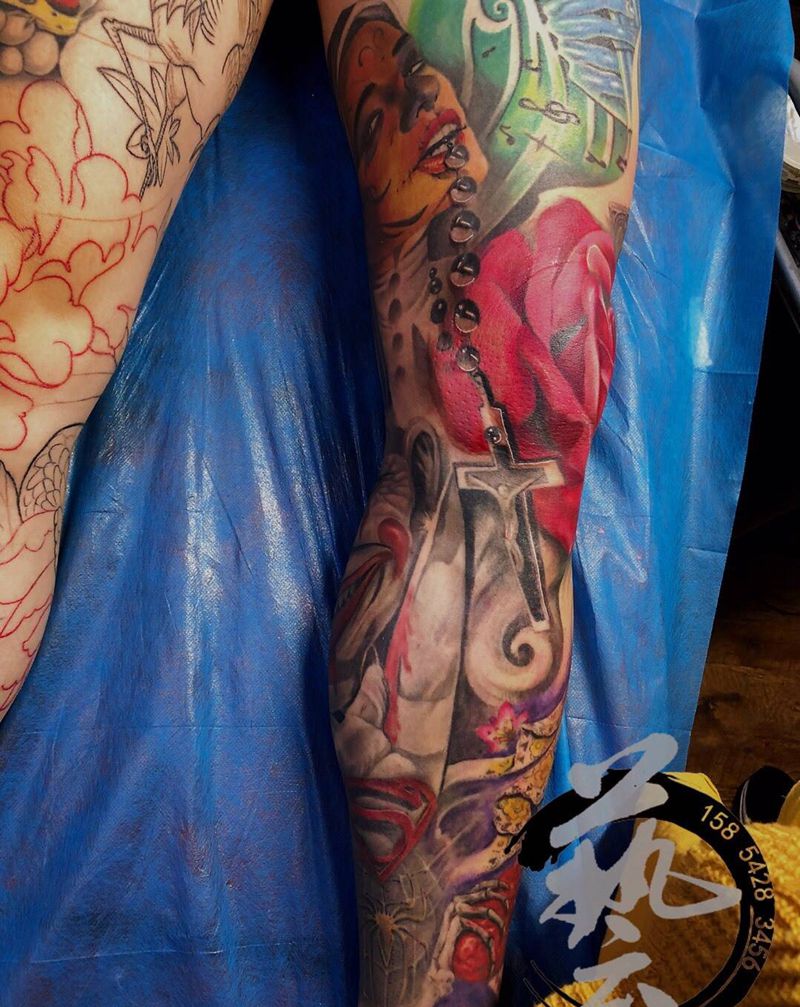 当前位置: 首页 >山东省青岛市纹身店-青岛艺绣堂纹身纹身图案>局部纹身图片_腿部欧美写实包腿写实欧美纹身图案