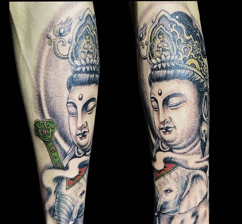 普贤菩萨纹身纹身图片_手臂老传统纹身图案