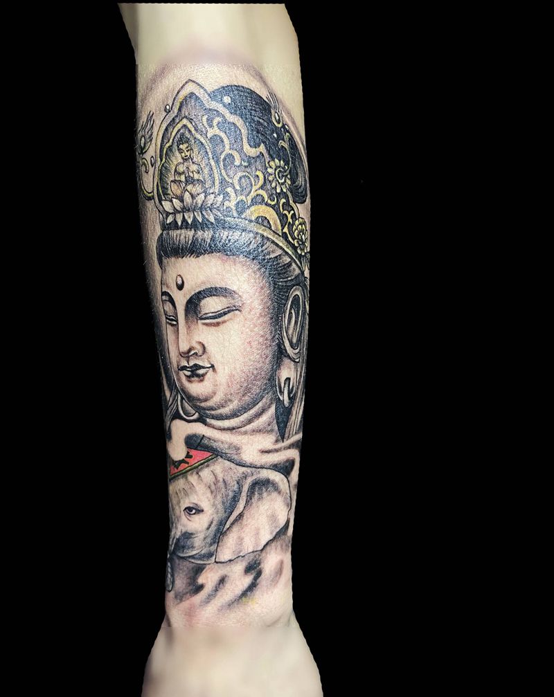 普贤菩萨纹身纹身图片_手臂老传统纹身图案