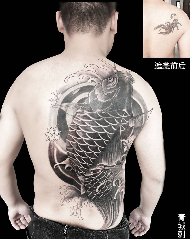 半背鲤鱼纹身遮盖旧纹身纹身图片_背部老传统新传统纹身图案