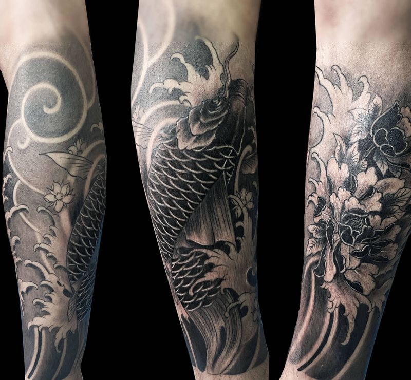 当前位置: 首页 >山东省青岛市纹身店-青城刺青纹身图案>招财鲤鱼纹身包小腿纹身纹身图片_腿部老传统纹身图案