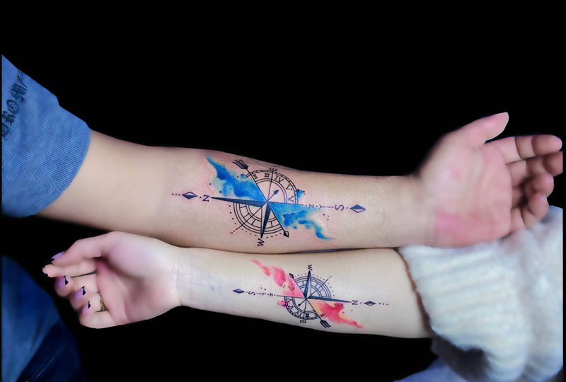 当前位置: 首页 >山东省青岛市纹身店-青城刺青纹身图案>情侣纹身 指南针纹身纹身图片_手臂水彩几何纹身图案