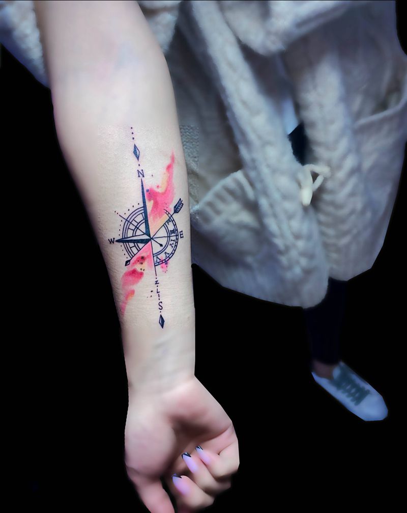 当前位置: 首页 >山东省青岛市纹身店-青城刺青纹身图案>情侣纹身 指南针纹身纹身图片_手臂水彩几何纹身图案