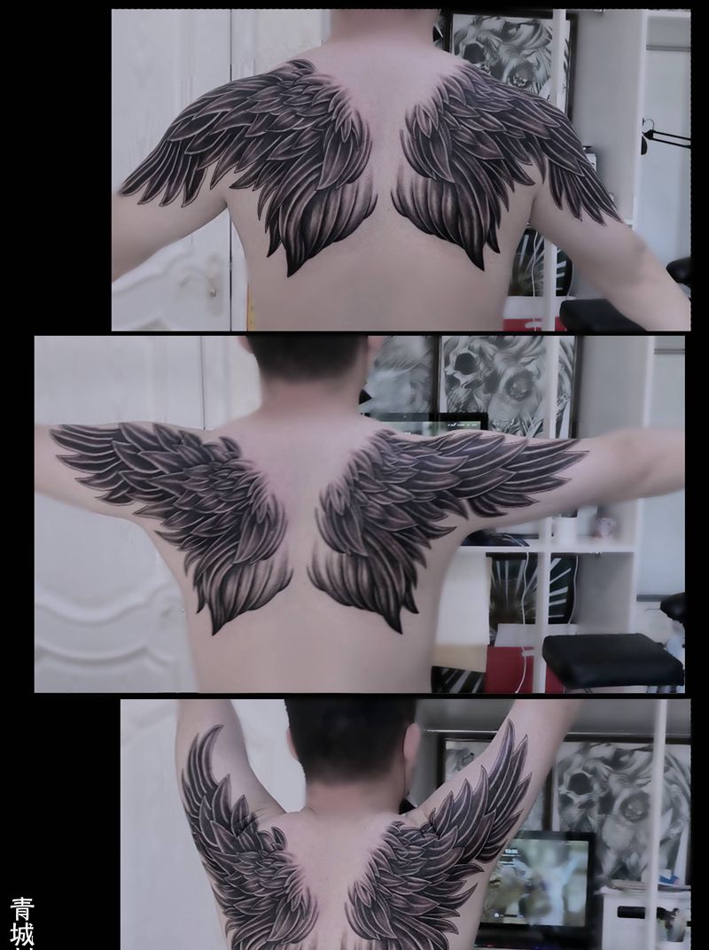当前位置: 首页 >山东省青岛市纹身店-青城刺青纹身图案>男生后背纹身翅膀纹身纹身图片_背部老传统纹身图案