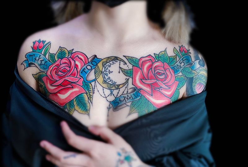 当前位置: 首页 >山东省青岛市纹身店-青城刺青纹身图案>欧美胸花纹身 女生纹身青岛即墨纹身图片_胸部New School纹身图案