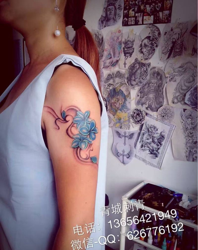 当前位置: 首页 >山东省青岛市纹身店-青城刺青纹身图案>花儿纹身图片_成品手臂清新传统植物纹身图案