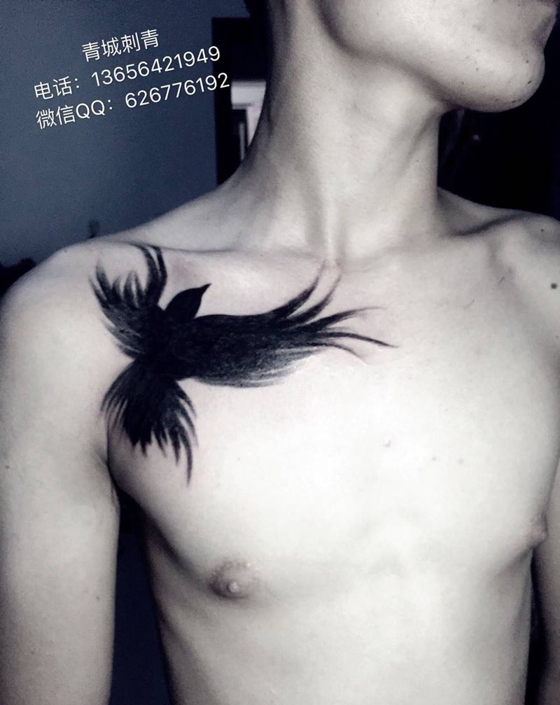 当前位置: 首页 >山东省青岛市纹身店-青城刺青纹身图案>鸟 遮盖纹身纹身图片_成品胸部传统动物纹身图案