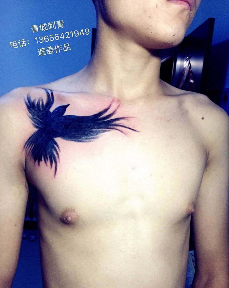 当前位置: 首页 >山东省青岛市纹身店-青城刺青纹身图案>鸟 遮盖纹身纹身图片_成品胸部传统动物纹身图案