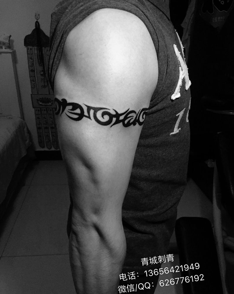 当前位置: 首页 >山东省青岛市纹身店-青城刺青纹身图案>肌肉与力量的象征 大臂图腾臂环纹身图片_成品手臂传统图腾原创纹身图案