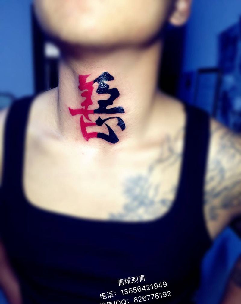 当前位置: 首页 >山东省青岛市纹身店-青城刺青纹身图案>善恶一念间纹身图片_成品颈部传统图腾字符纹身图案