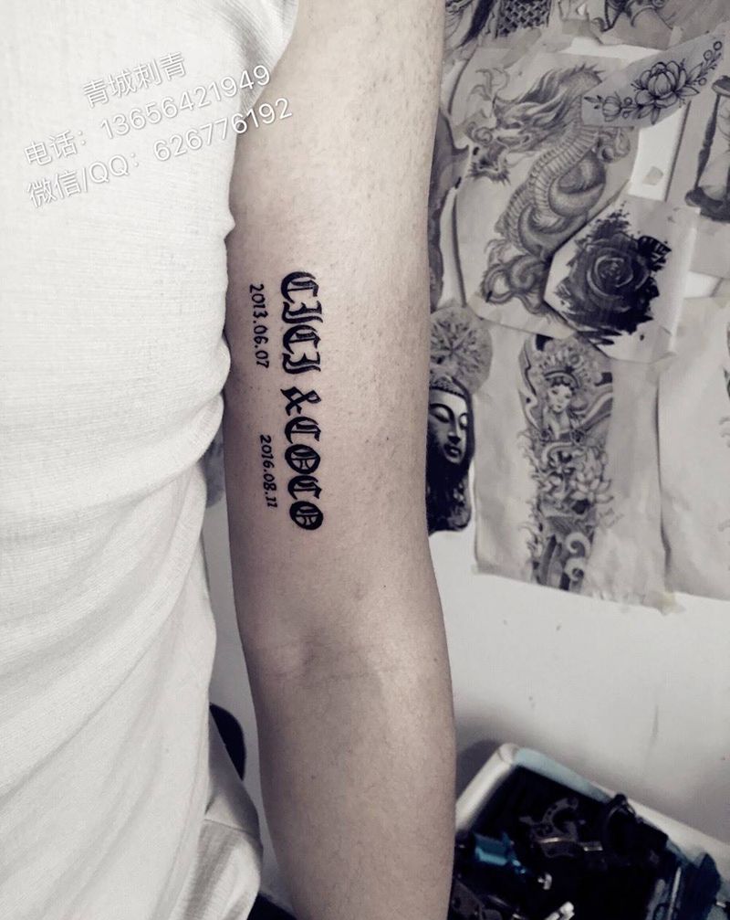 • T家庭图,一家四口生日纪念!纹身图片_手臂纹身图案
