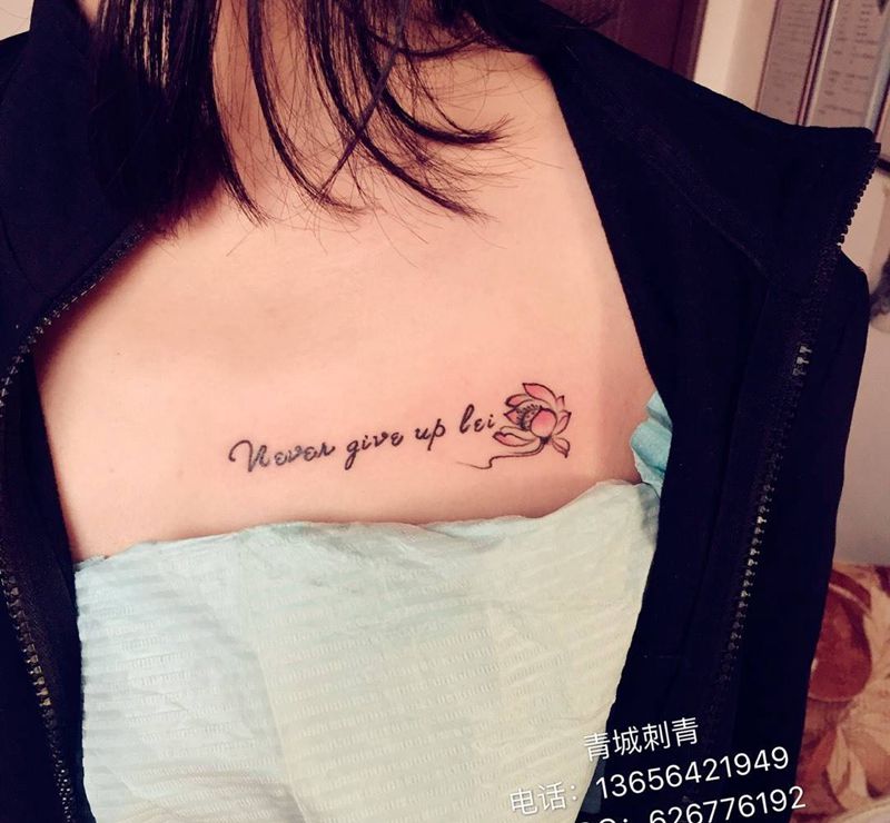 美女小清新一枚纹身图片_成品胸部传统清新植物字符原创纹身图案
