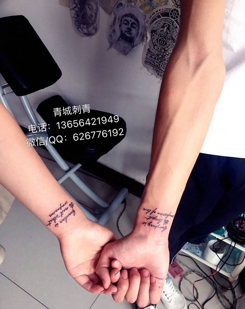 当前位置: 首页 >山东省青岛市纹身店-青城刺青纹身图案>情侣纹身纹身图片_成品手臂清新传统字符原创纹身图案