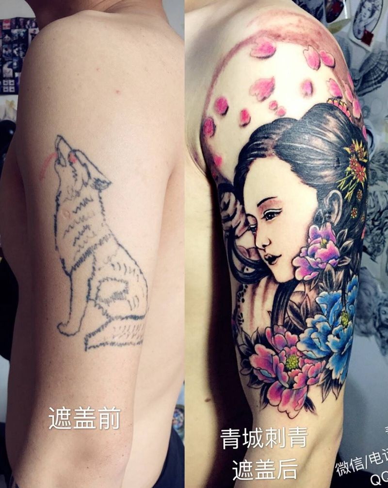 当前位置: 首页 >山东省青岛市纹身店-青城刺青纹身图案>遮盖大灰狼纹身纹身图片_成品手臂传统人物原创纹身图案