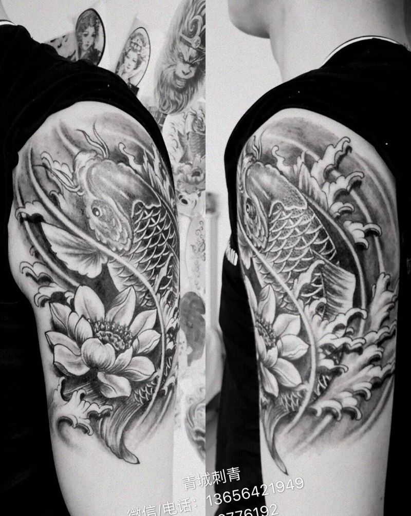 鲤鱼纹身纹身图片_成品手臂传统动物纹身图案