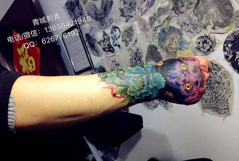 当前位置: 首页 >山东省青岛市纹身店-青城刺青纹身图案>遮盖蝎子纹身图片_成品手臂手部传统鬼神植物原创纹身图案