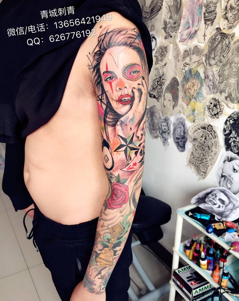 当前位置: 首页 >山东省青岛市纹身店-青城刺青纹身图案>花臂纹身图片_成品手臂欧美传统肖像字符人物植物静物宗教纹身图案