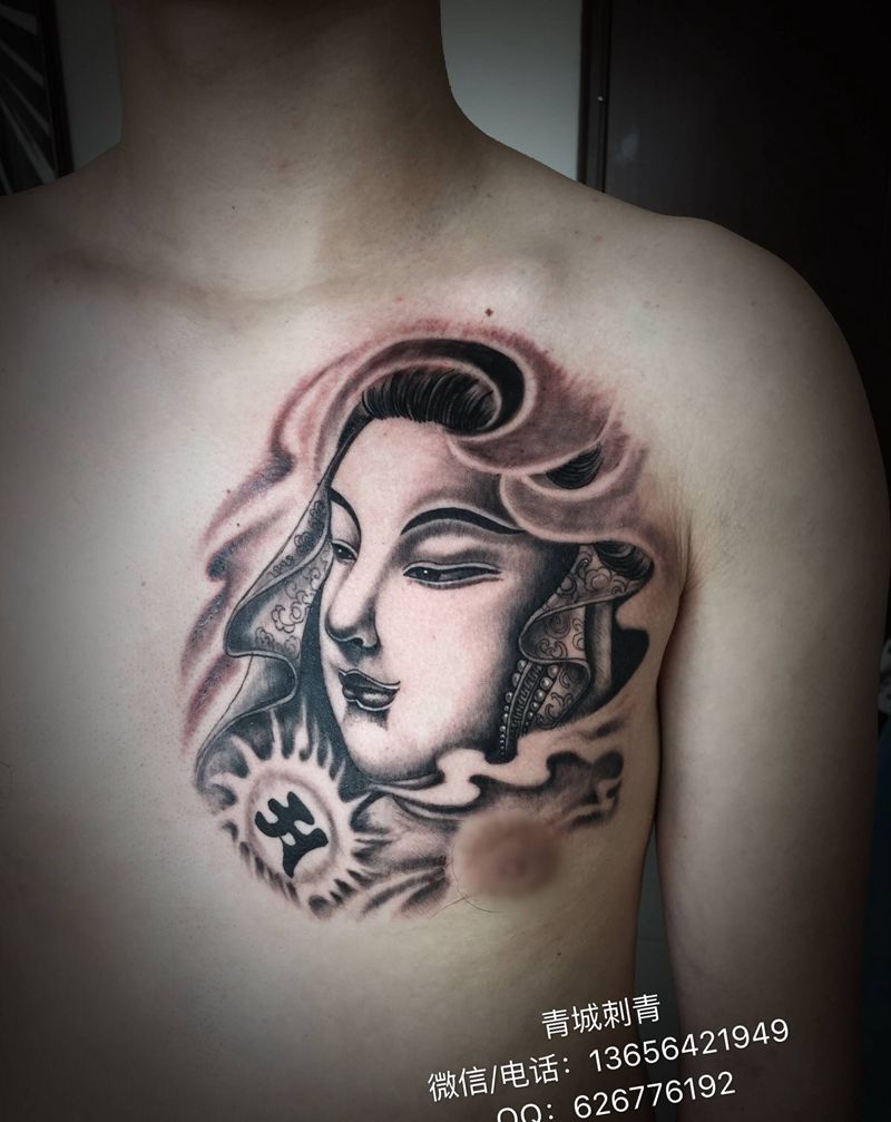 文殊菩萨纹身纹身图片_胸部老传统新传统纹身图案