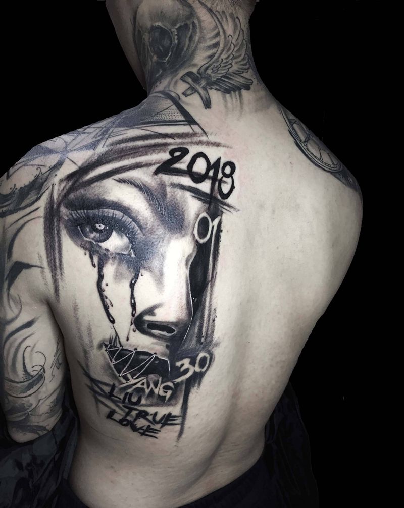 欧美写实头像纹身图片_背部欧美写实纹身图案
