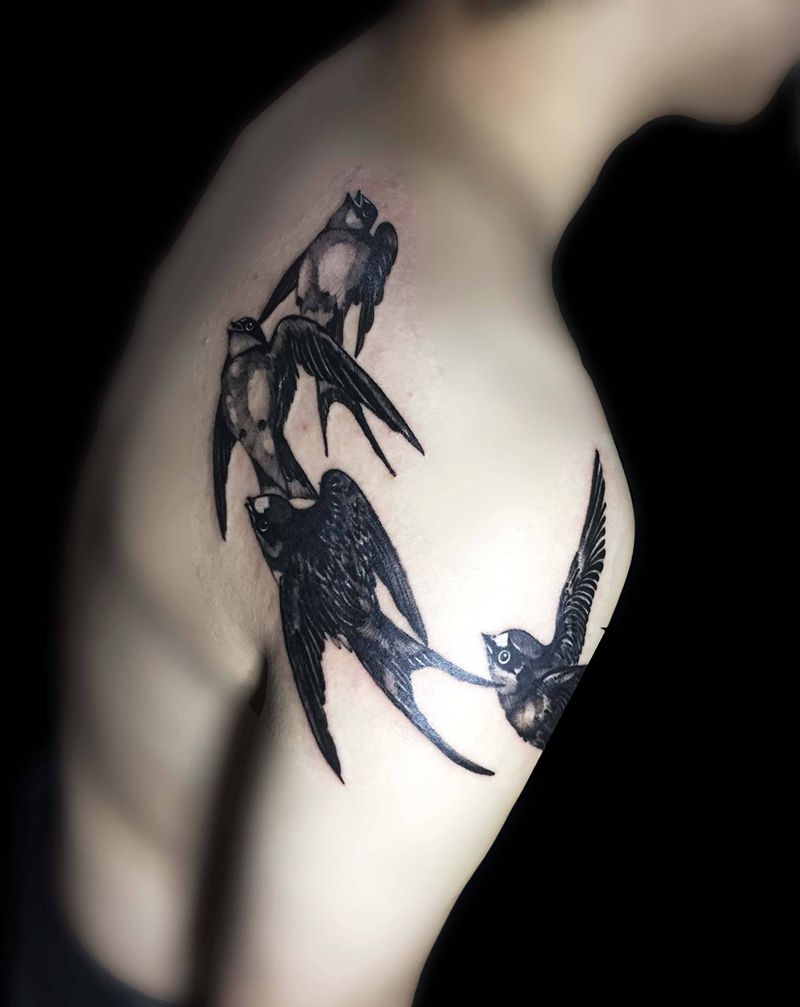 小燕子纹身纹身图片_肩部背部新传统欧美写实纹身图案