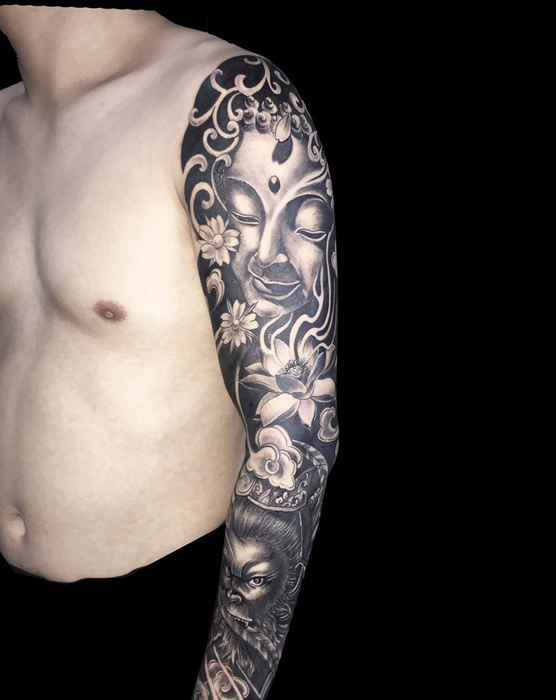 斗战胜佛 如来 花臂纹身 即墨纹身图片_手臂新传统老传统纹身图案