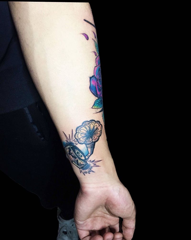 • 手背潮流时尚的玫瑰花眼睛纹身图案