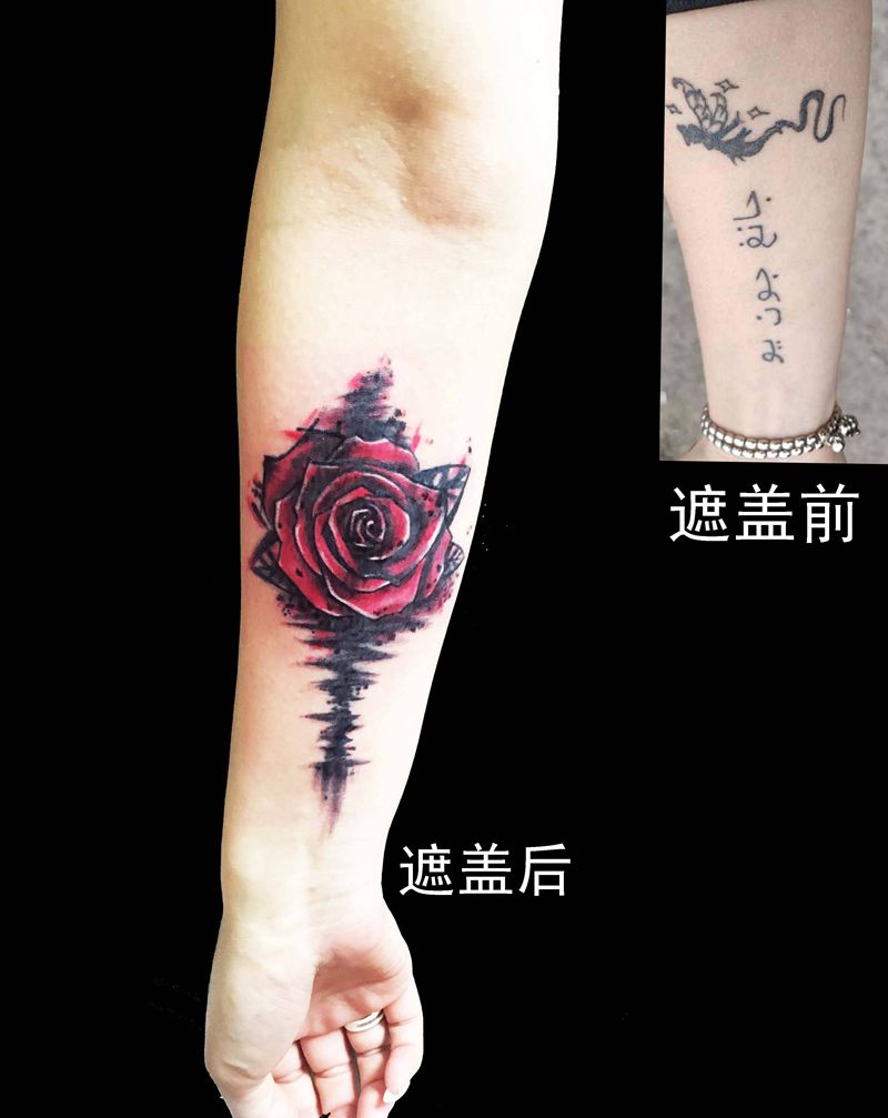 遮盖失败纹身玫瑰纹身纹身图片_水彩水墨纹身图案