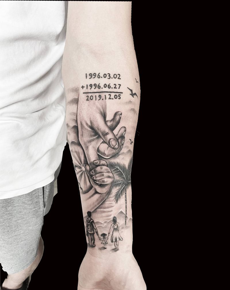 亲子纹身父爱如山纹身一家三口纹纹身图片_手臂欧美写实新传统纹身图案