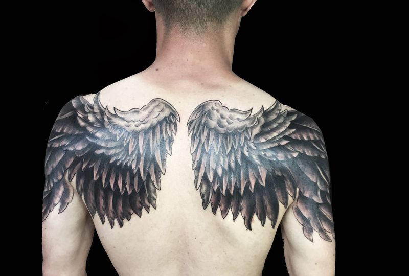 翅膀纹身纹身图片_背部手臂老传统新传统纹身图案