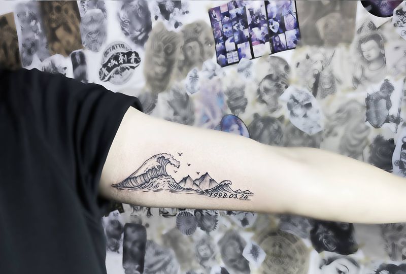 山水纹身 数字纹身 手指纹纹身图片_手臂手部新传统花体字山水纹身图案