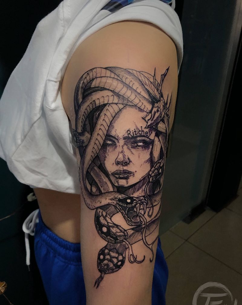 当前位置: 首页 >山东省青岛市纹身店-FV 纹身 艺术区纹身图案>美杜莎纹身图片_手臂纹身图案