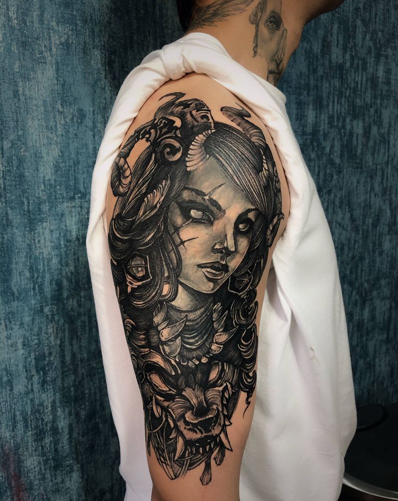 • 纹身吧推荐的披肩图腾半胛纹身图案作品展示