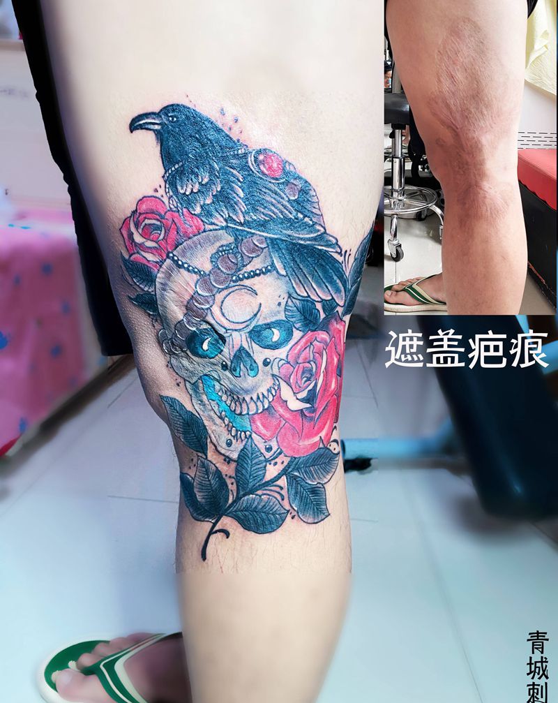 • T网红王老大花腿龙纹身图片_腿部新传统纹身图案