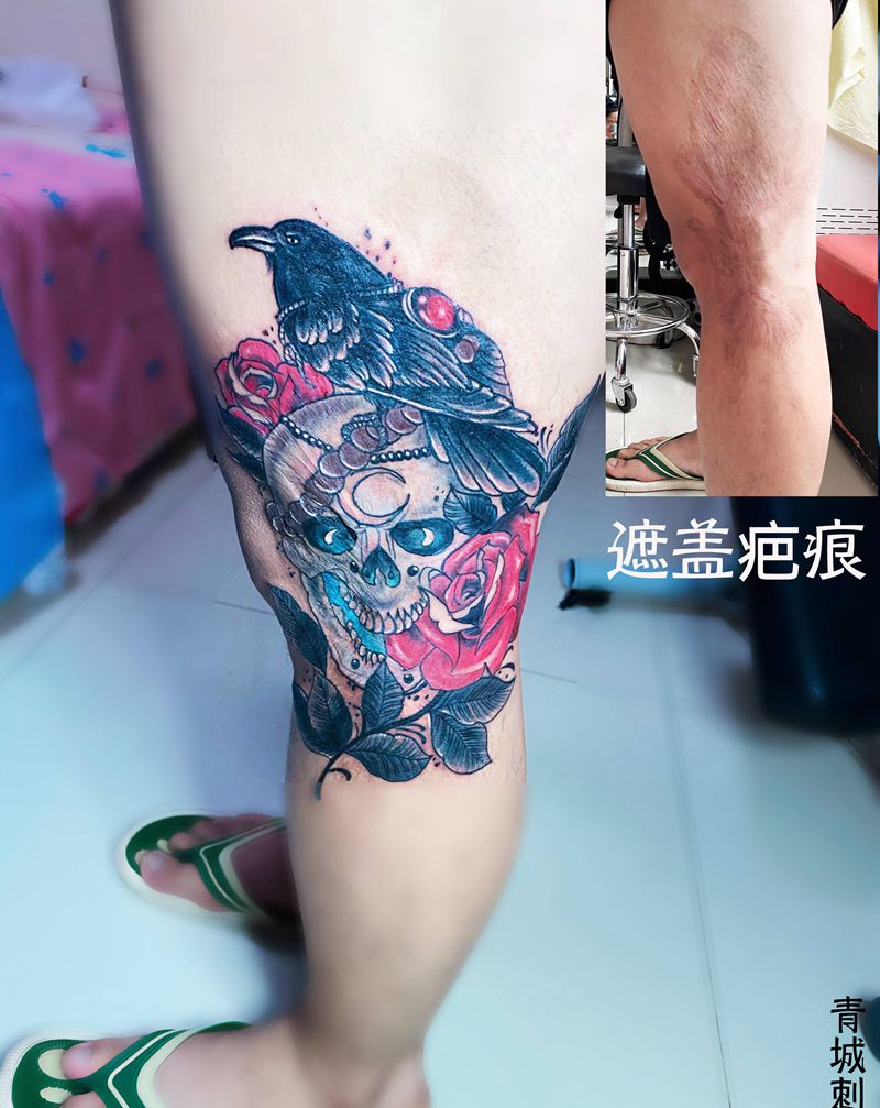 • T网红王老大花腿龙纹身图片_腿部新传统纹身图案