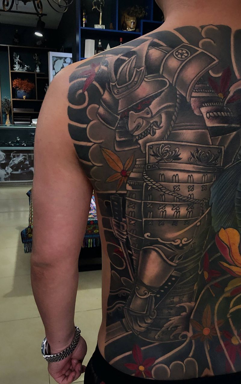 黑灰满背纹身图案