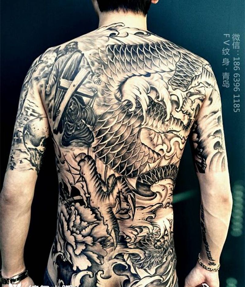 黑灰满背纹身图案
