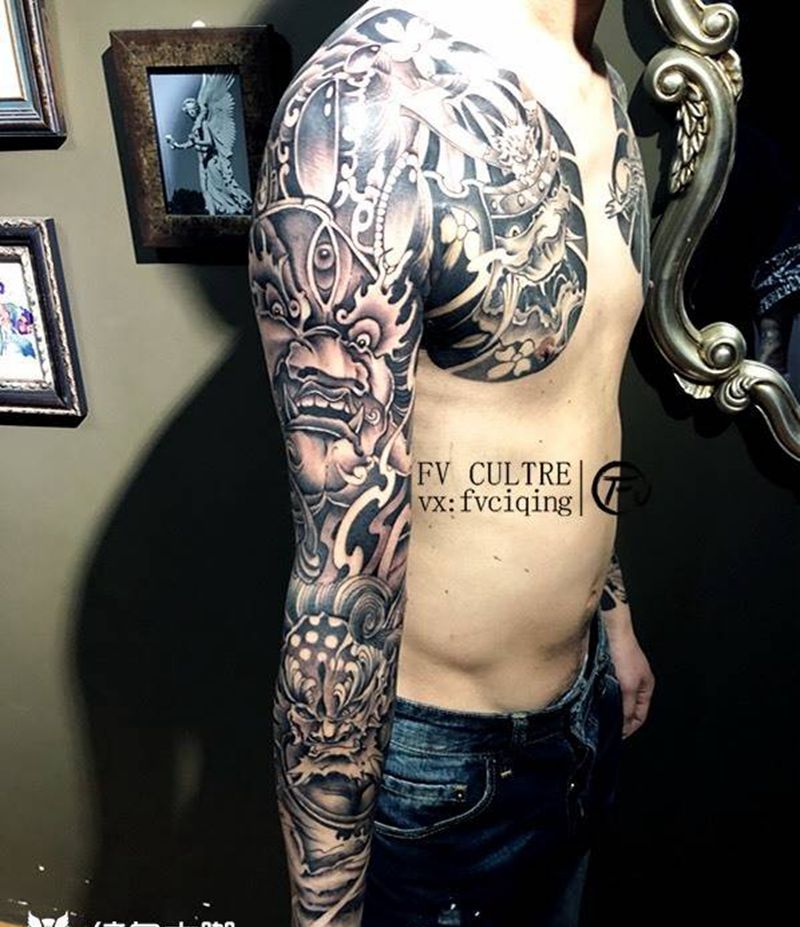 黑灰满背纹身图案