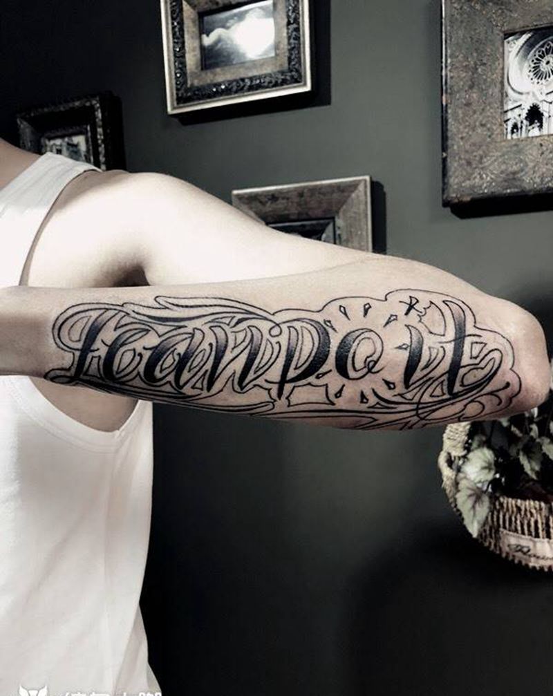 奇卡诺花体纹身图片_手臂字符青岛纹身图案