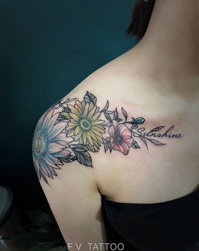 当前位置: 首页 >山东省青岛市纹身店-FV 纹身 艺术区纹身图案>向日葵肩花纹身图片