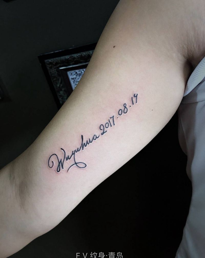 • T家庭图,一家四口生日纪念!纹身图片_手臂纹身图案